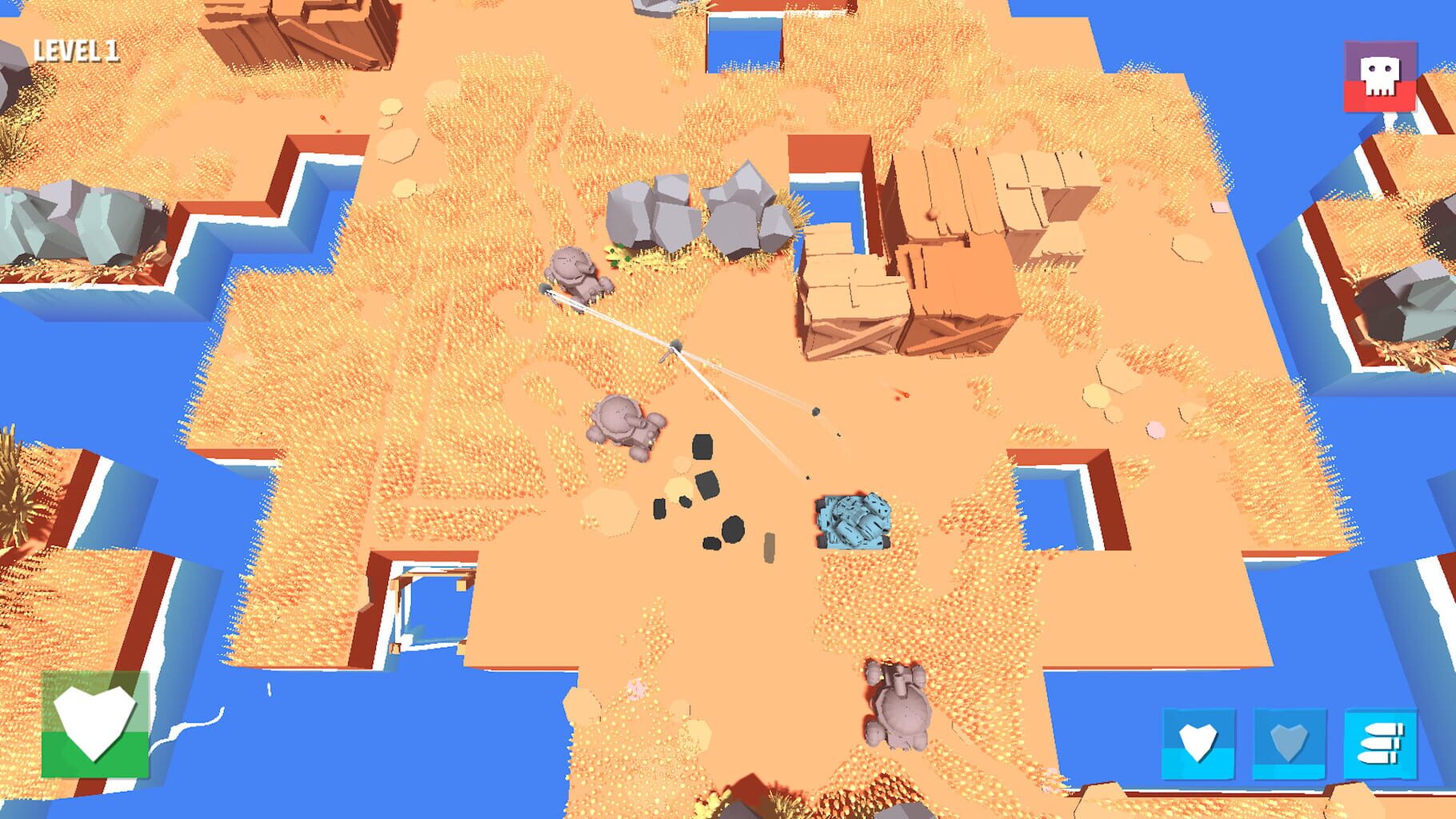 Battle Bandits is a top down tank shooter with customisable tanks and 30 levels to complete!