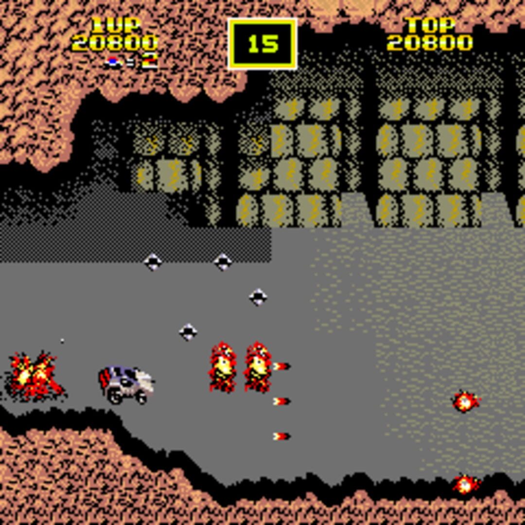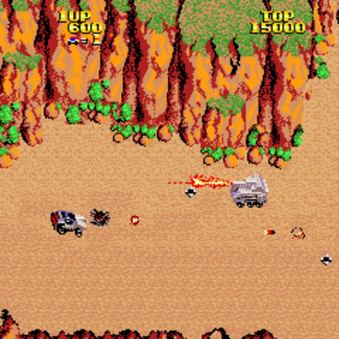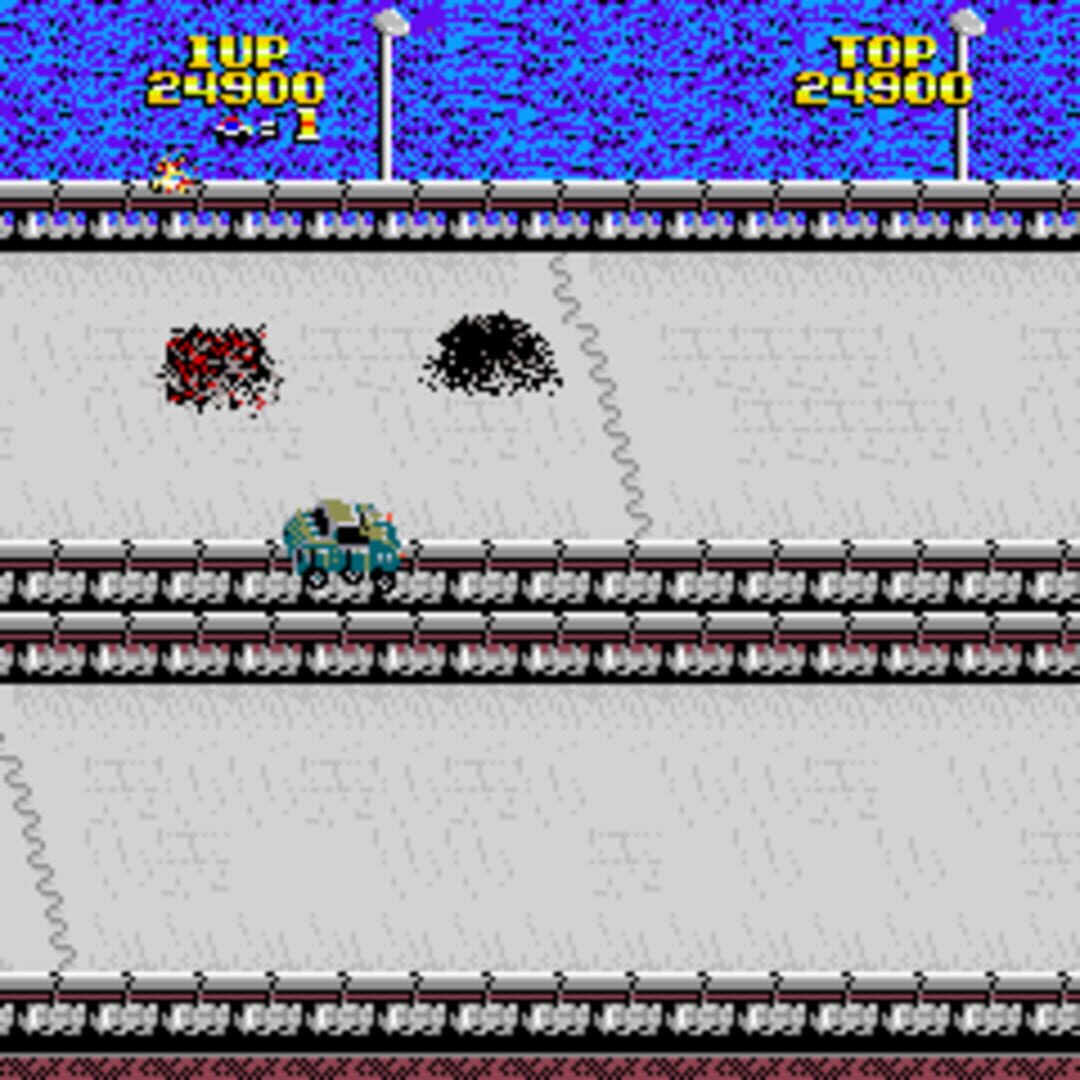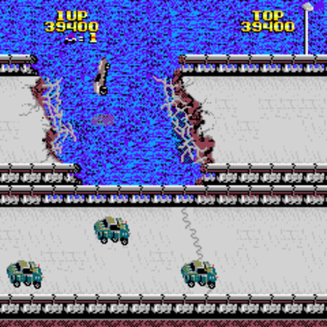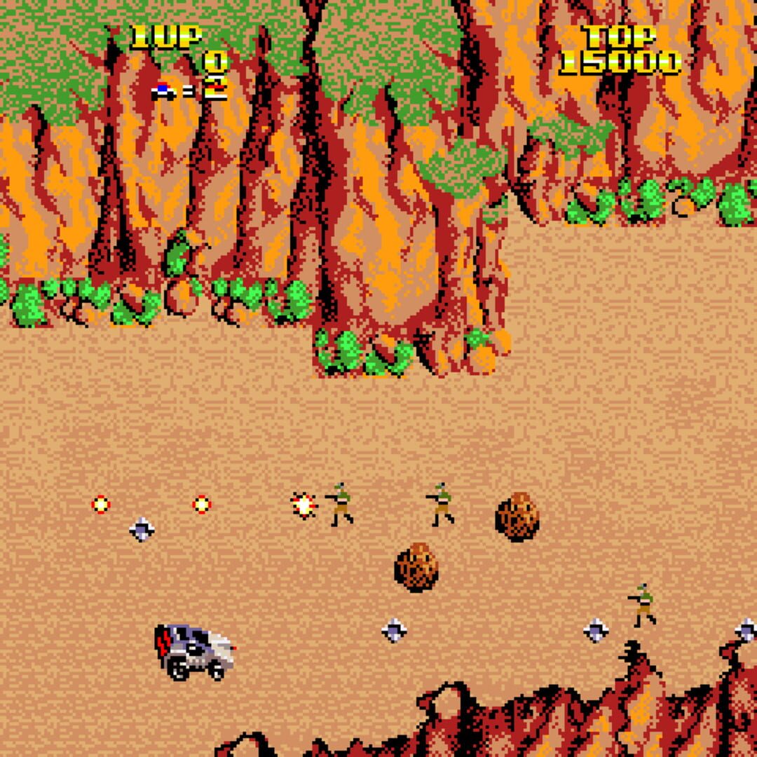 BreakThru is a 2D side-scrolling vehicle shooter. Your mission: race, jump, and blast your way through five levels (mountains, bridge, plains, city, and airfield) of enemy defenses to recapture the stolen jet fighter. A host of enemy soldiers, mines, vehicles, and aircraft will try to stop you, though. Oh yeah… and don’t forget to watch out for those rocket attacks and falling rocks!