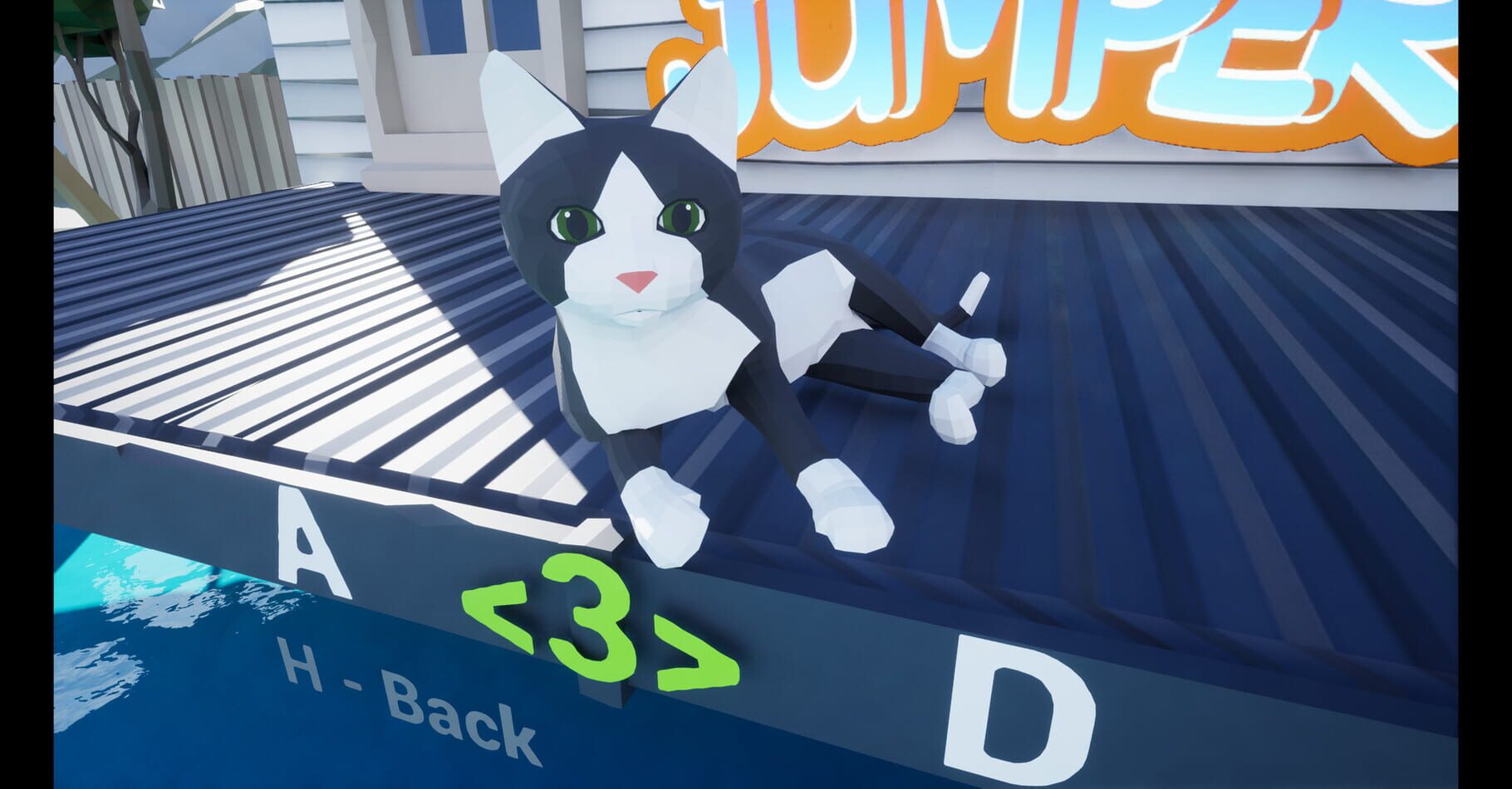 in this game you will be a cat and if you fall into water, you will be disturbed by shark and the shark brought you to staring point again and again. so be careful.