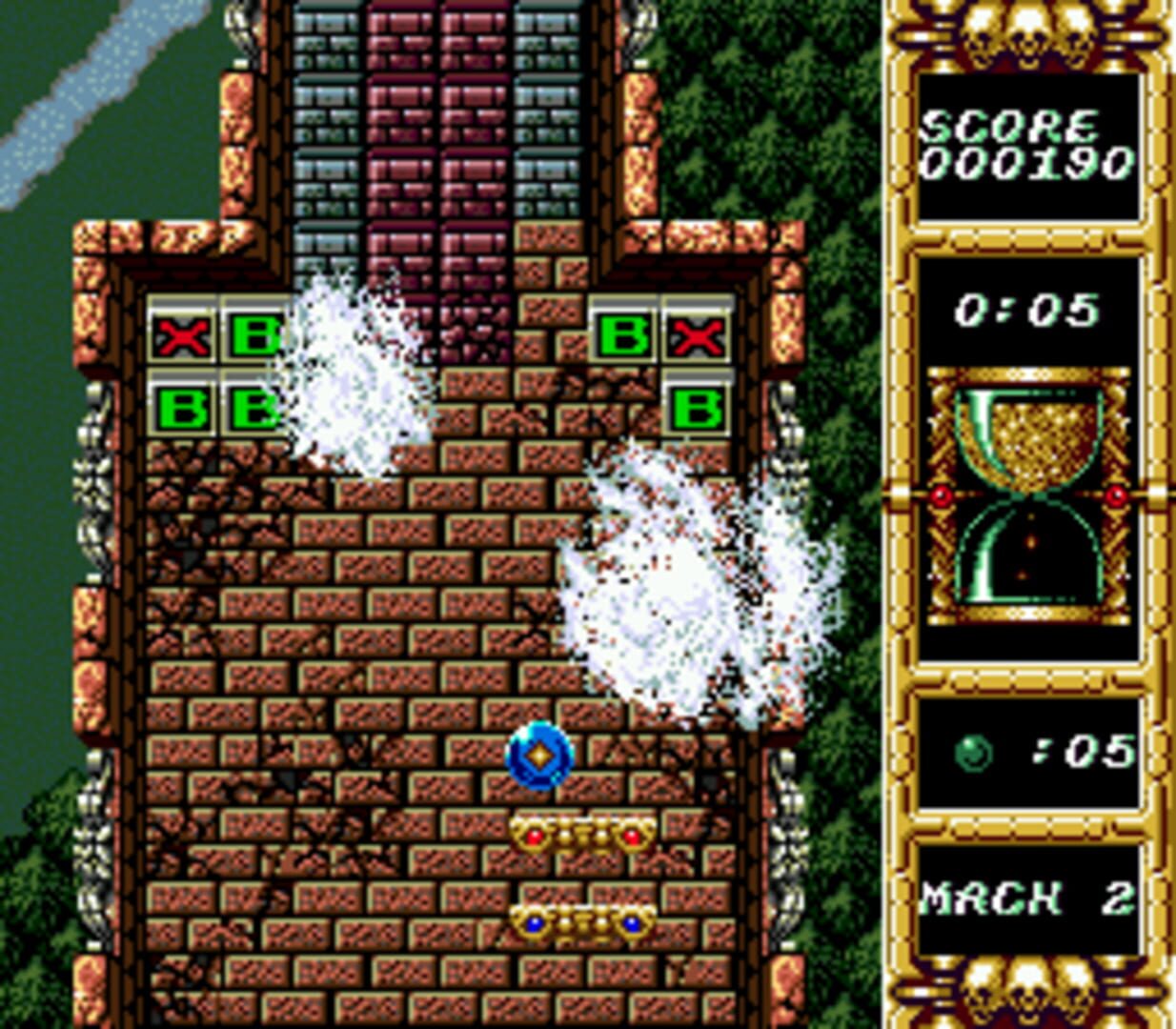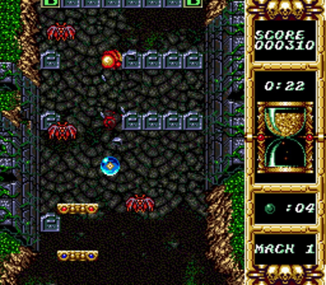“Devilish” is different from other paddle games by letting you play with two paddles. The lower one behaves just like a usual paddle – you use it to prevent the ball from dropping down. The upper one can move and turn, allowing you to hit the ball from different angles and from different parts of the screen. You advance through levels by destroying bricks and enemies, going up until the level boss enemy appears.
