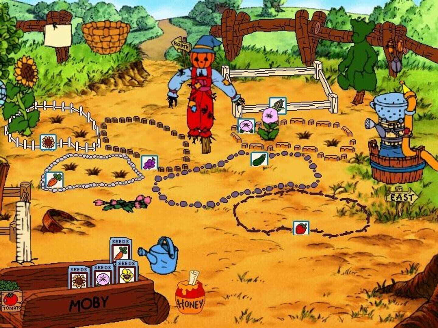 Gameplay is identical to that of the sister game Disney’s Ready to Read with Pooh: pointing and clicking the mouse will perform actions, the cursor is a little bumblebee that flutters it’s wings whenever it is over a hotspot, and when dragging an object is necessary the game utilizes click-and-stick.