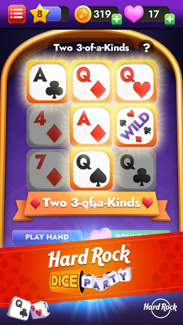 It’s fun, it’s a challenge, it’s an all new social dice game designed to bring together family and friends. The Hard Rock Dice Party app is a unique dice game featuring an entire deck of cards on the dice!