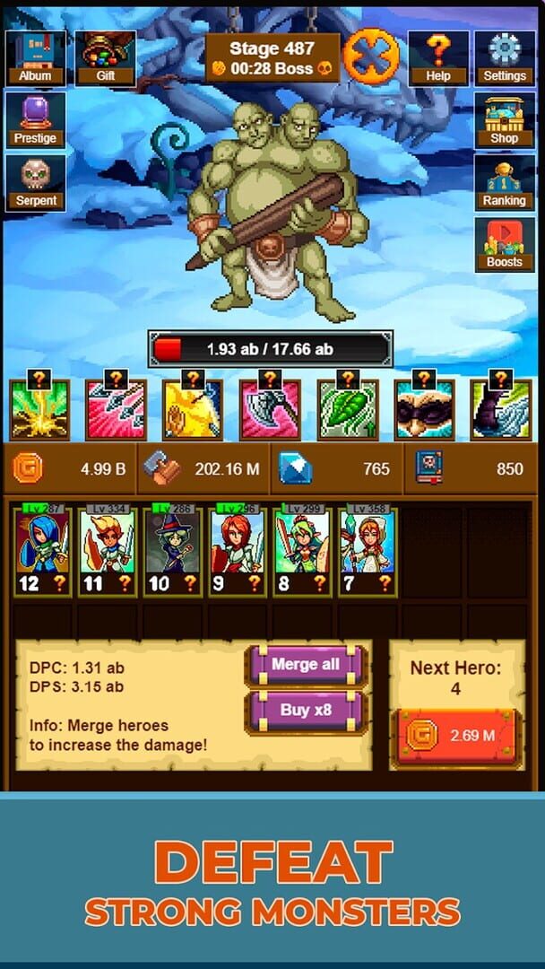 Idle Pixel Heroes is an idle game where you merge and upgrade stunning heroes to beat monsters. Collect and merge cute pets to increase your stats and become the best player in the rankings.