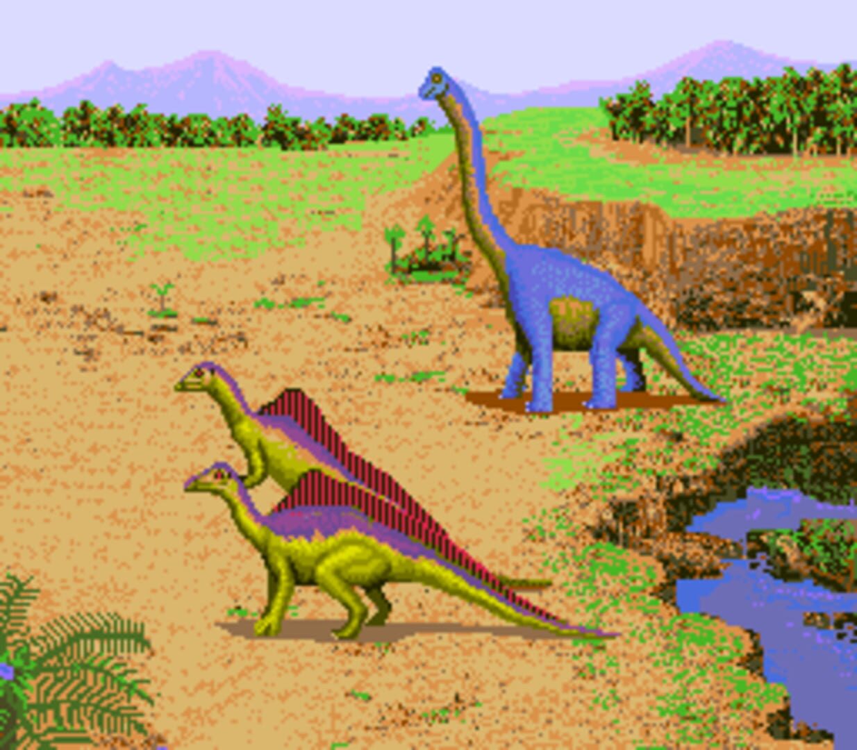 You’re exploring a primeval forest over 100 million years ago. Suddenly, the mighty Tyrannosaurus appears! With a push of a button, you bring him to life! The magic of TurboGrafx-CD brings the exciting world of dinosaurs into your home. Move through 20 prehistoric panoramas and watch creatures spring into action as they search for food and struggle for survival. Sort through hundreds of the mighty beasts and see what may have led to their ultimate extinction.
