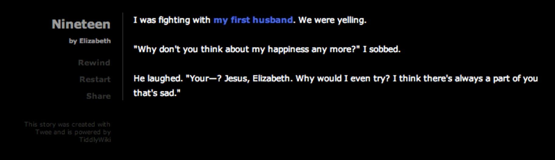 When I was twelve, I tried to kill myself. I’ve dealt with depression my whole life, but that was the last time I succumbed to suicidal ideation. It’s been nineteen years. This game discusses a lot of things pretty frankly— completed suicide attempts of friends, being rushed to the ER, using Christianity to prop up my self-discipline for a while, my fears for my children.