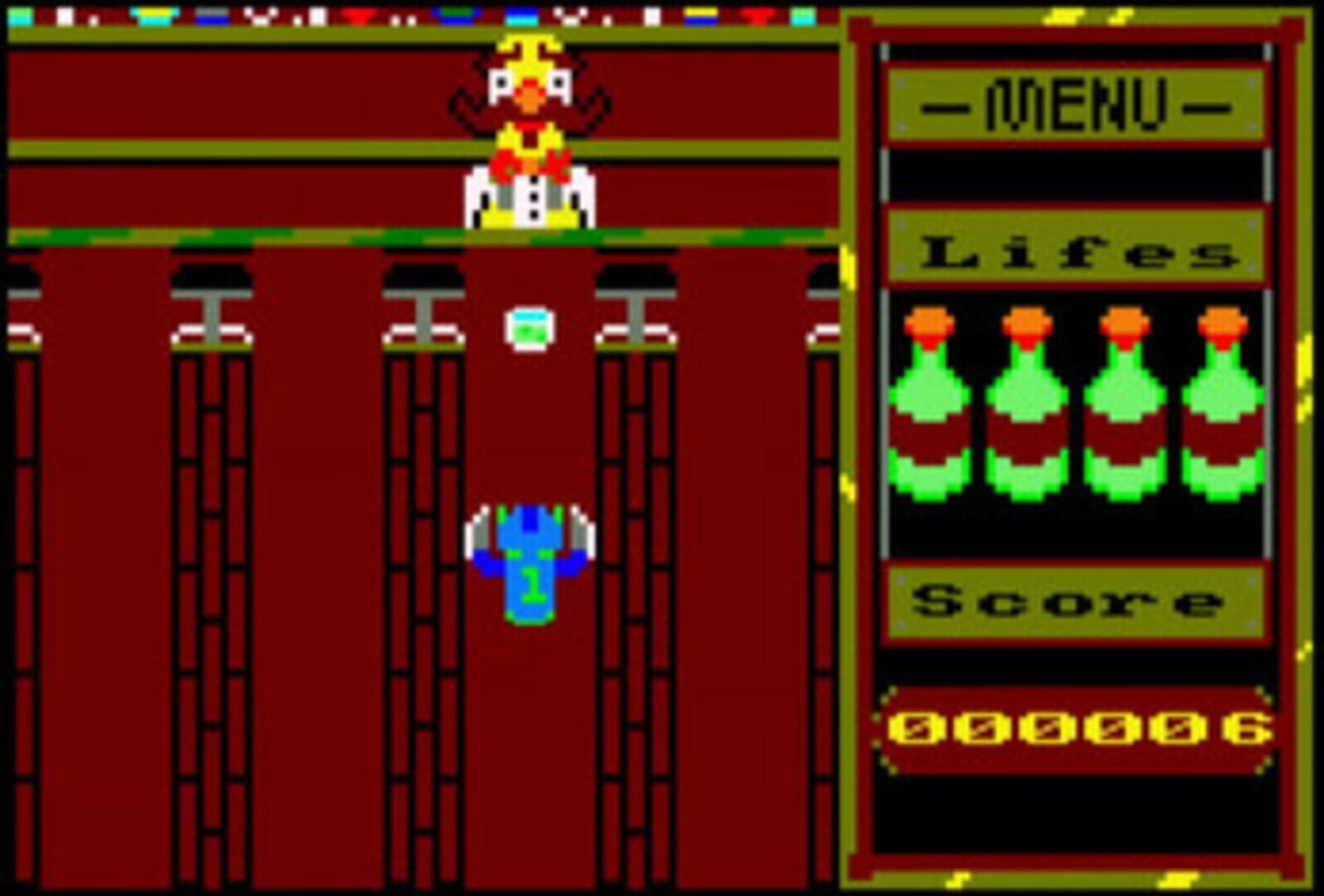 An arcade, vertical shoot ‘Em up where you play as Fred, a barman of a wild west saloon.