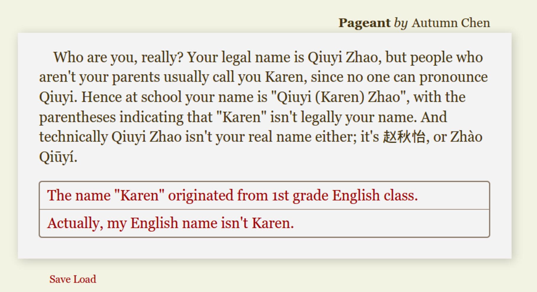 An interactive story about a girl who joins a beauty pageant to improve her college applications.