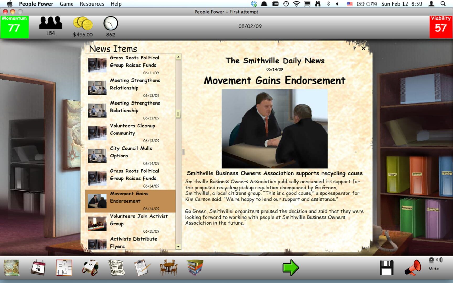 But People Power is more than just a game. It’s an opportunity to join a community of others who want to learn about civil resistance and nonviolent strategies. The game allows you to design and play your own custom scenarios by using a Scenario Builder. Everyone can design scenarios and post them on the People Power forum, available to the whole community, where you can exchange ideas with other players and scenario writers.