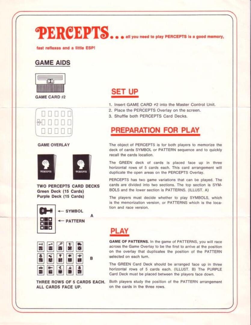 Percepts is the only known game that Magnavox gave away for free. When you purchased the Magnavox Odyssey in 1972 you could get a free game from Magnavox if you registered the purchase by mailing the “free bonus game” coupon to them. Worked with Cartridge #2.