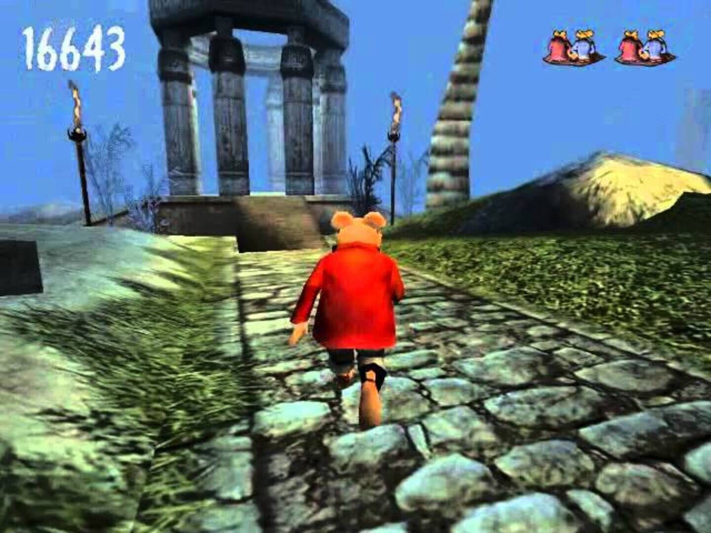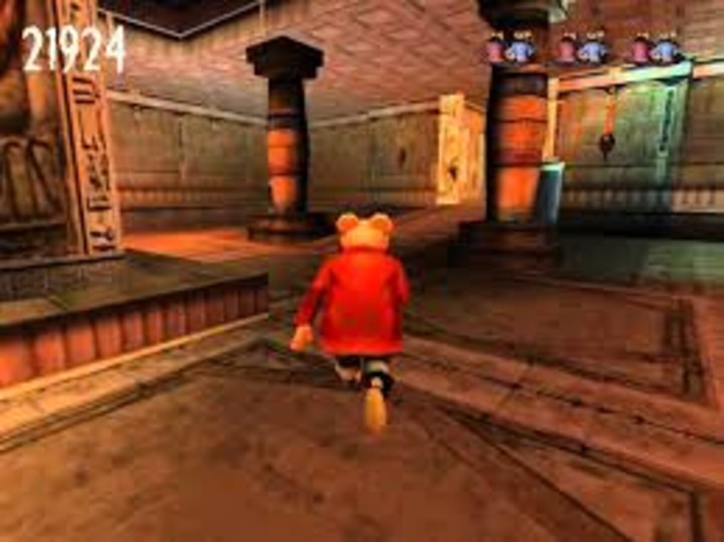 Unlike previous games in the series, this game had an adventure round in full 3D when you walked around in full 3D view and had missions. The obstacle courses were an active 3D rendering and if you crashed on an obstacle you automatically passed the obstacle. The game had no systematic varying crash scenes but showed a short and simple text when Rummel and Rabalder crashed. The game had a track where they rode on engines instead of sitting on a hammock. You should also, as usual, collect lifelines and “Cheetos-like” snacks for points.