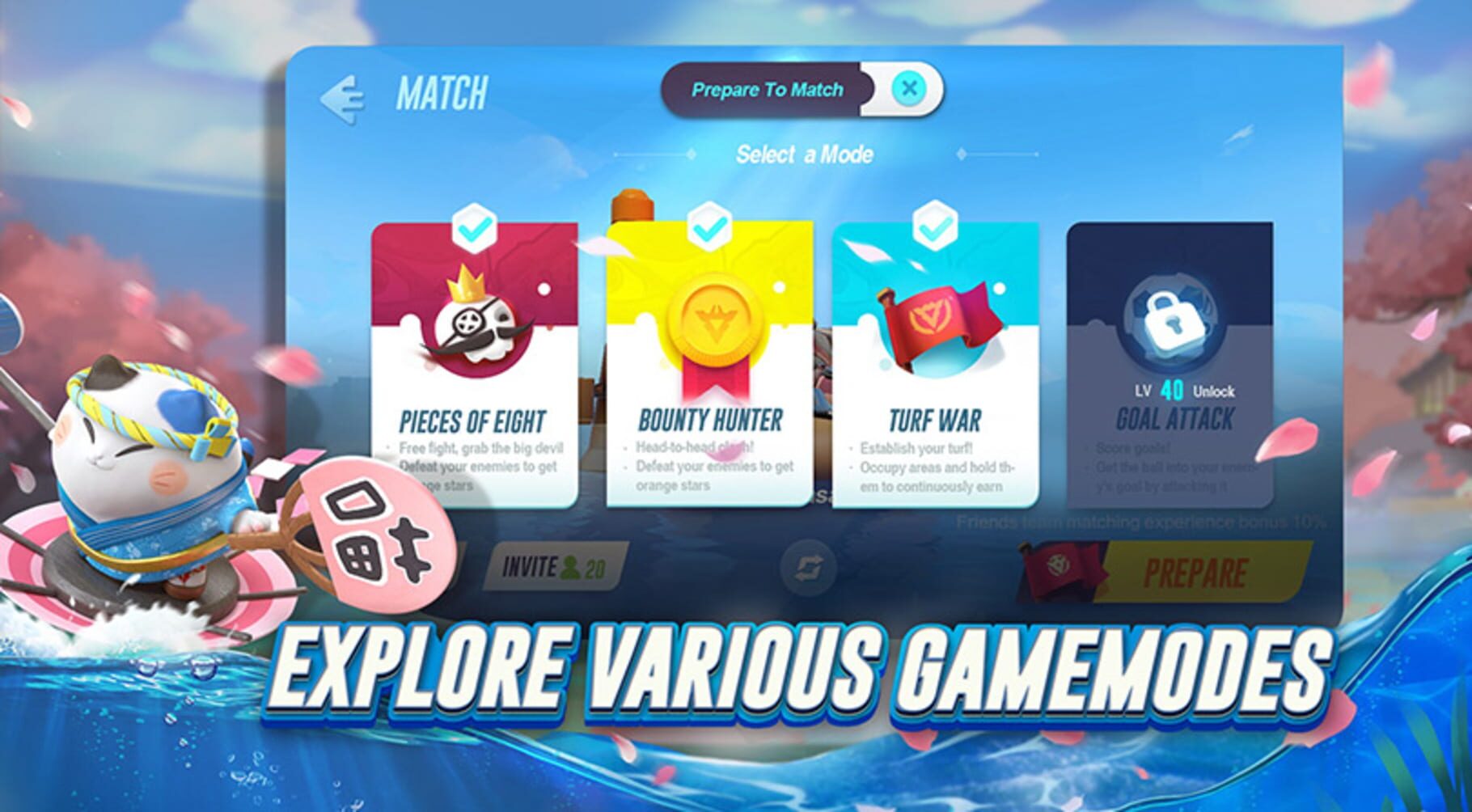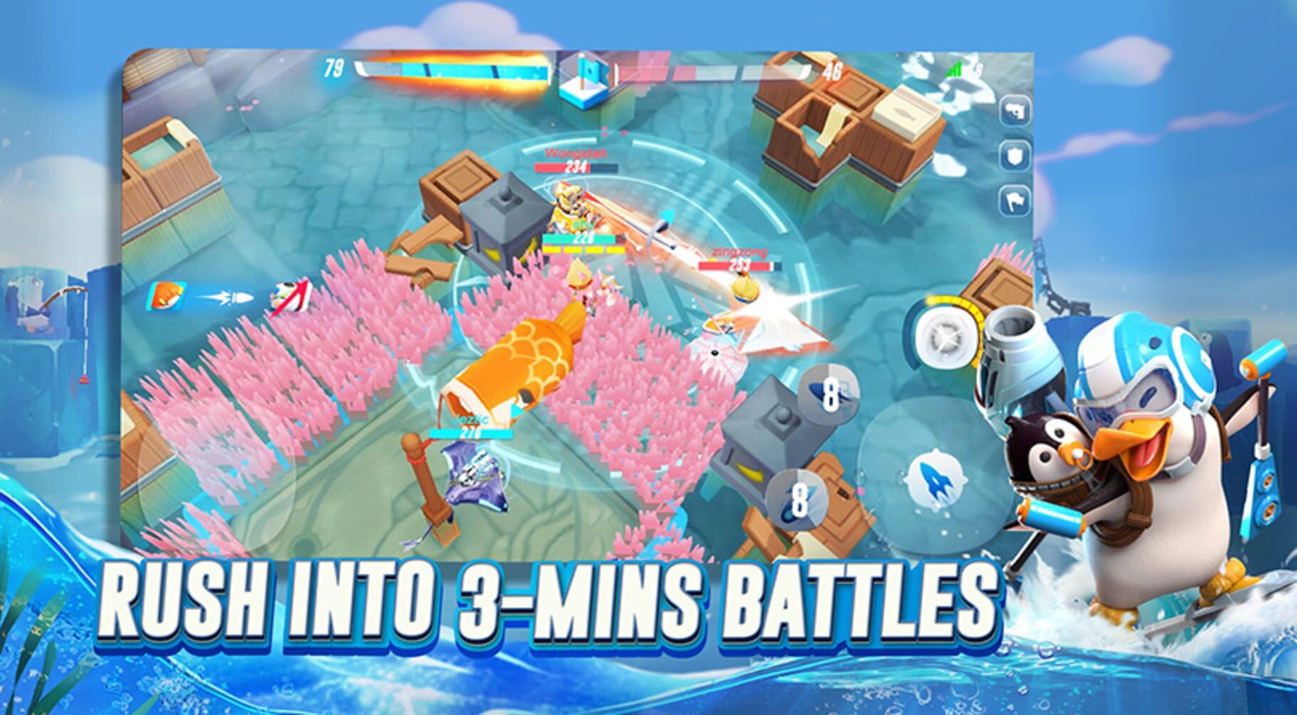 Team up with friends, pick your adorable Mariner and brawl in an arena of 8 players in the Pieces of Eight game mode. Collect the stars scattered when you defeat enemies. First to keep 30 stars for 60 seconds, and win the ultimate honor at the sea!