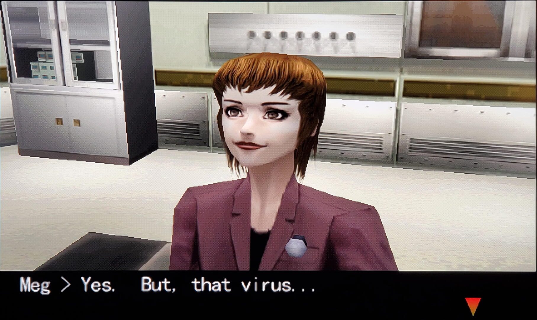 When in the virtual world, players can make use of a flashlight to help Meg find her way through the darkened corridors. Other useful items she include healing serum and various context-sensitive objects that will aid her progress through the adventure. Often, Meg will be required to seek out a specific character in order to advance. Cut scenes highlight important encounters throughout the quest. Players can record their progress using devices scattered around the game world and can manage their inventory by placing unwanted items in boxes, which also are found in various locations.