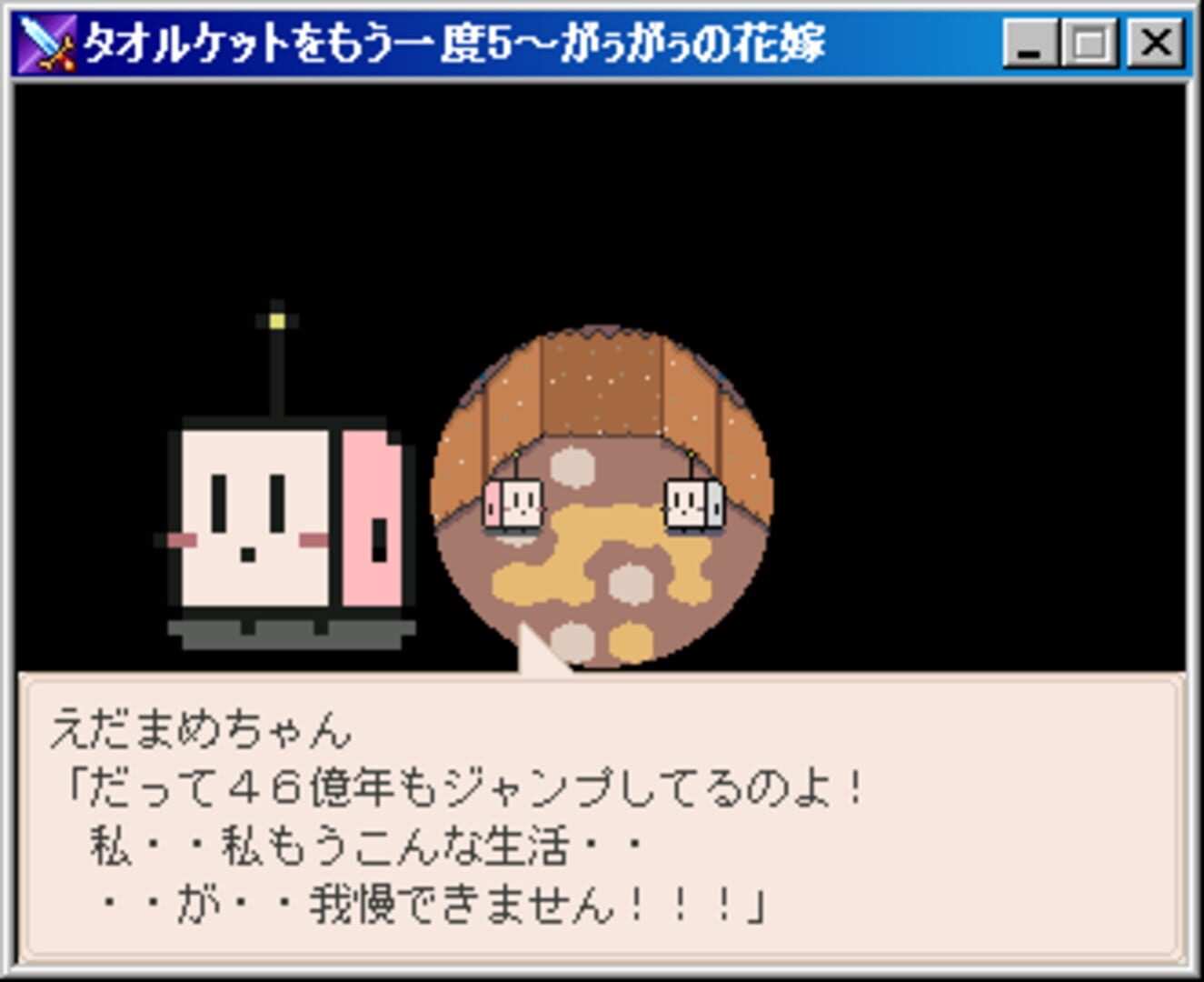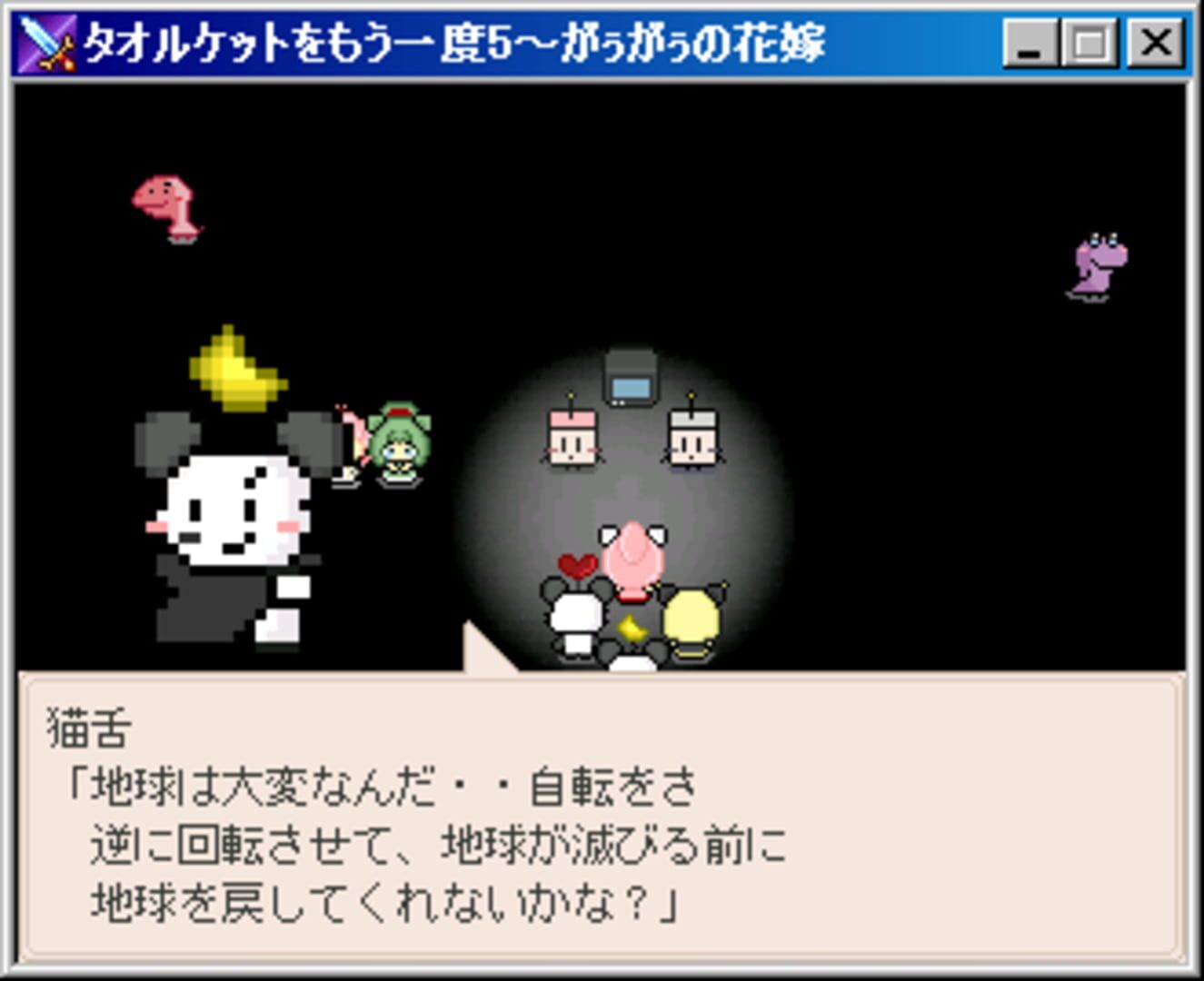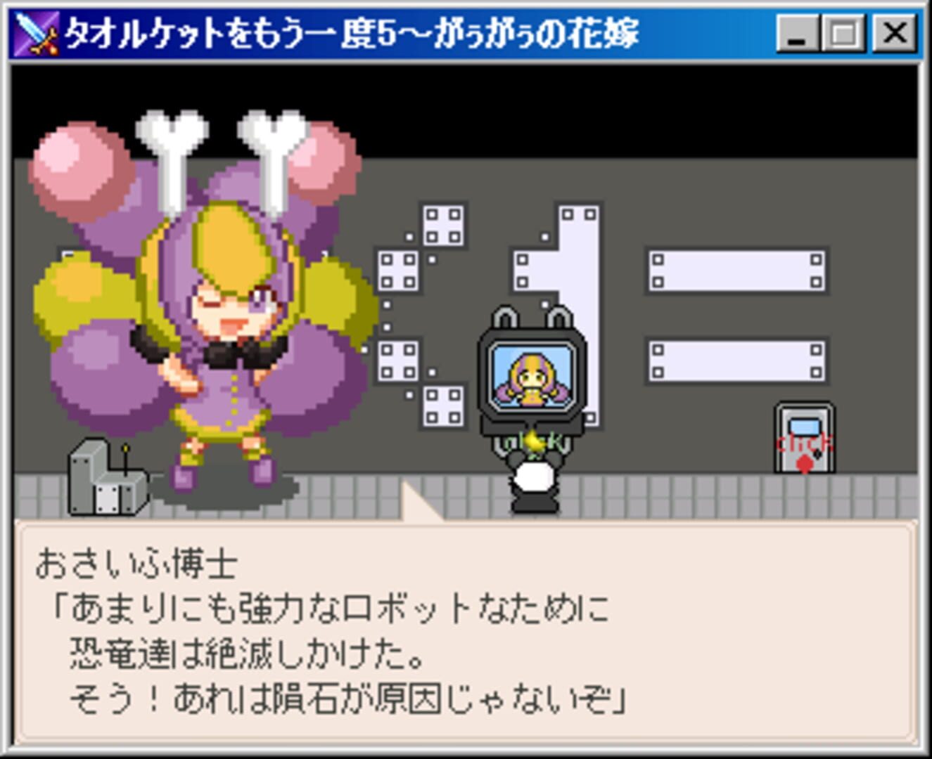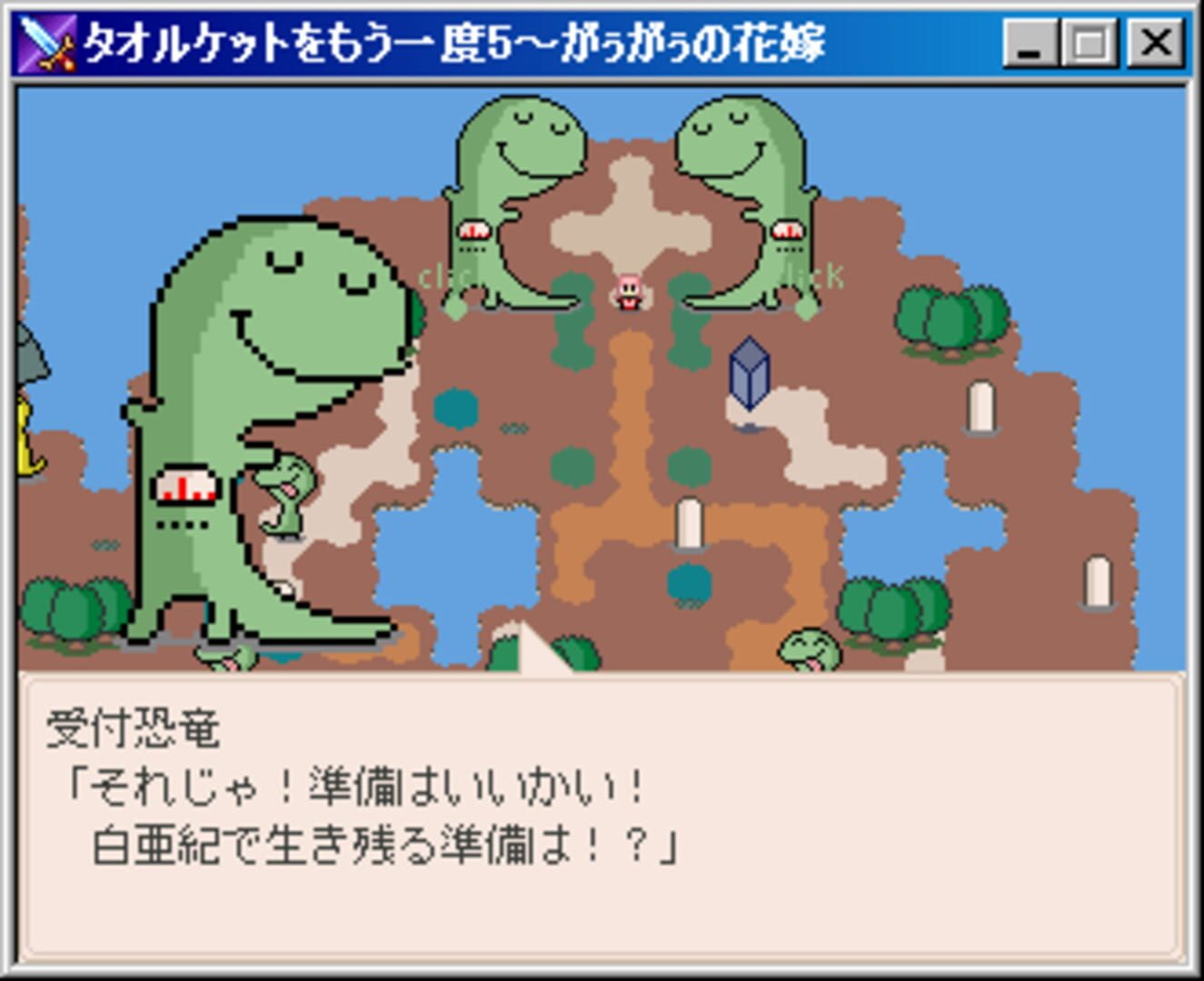 TK5 is much sillier than the past few games, and a lighthearted “back to the roots” of the series of sorts. Towelket ~Fury~ was meant to become TK5, but was cancelled and now Gaugau’s Bride has its spot. There was also another prototype game called “Towelket Classic” or “Towelket Omote” which is only about an hour long.